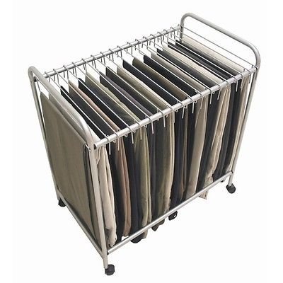 -. Title : Rolling Pants Trolley Hanger Slacks Organizer Rack Organize Clothes Dress 18pr