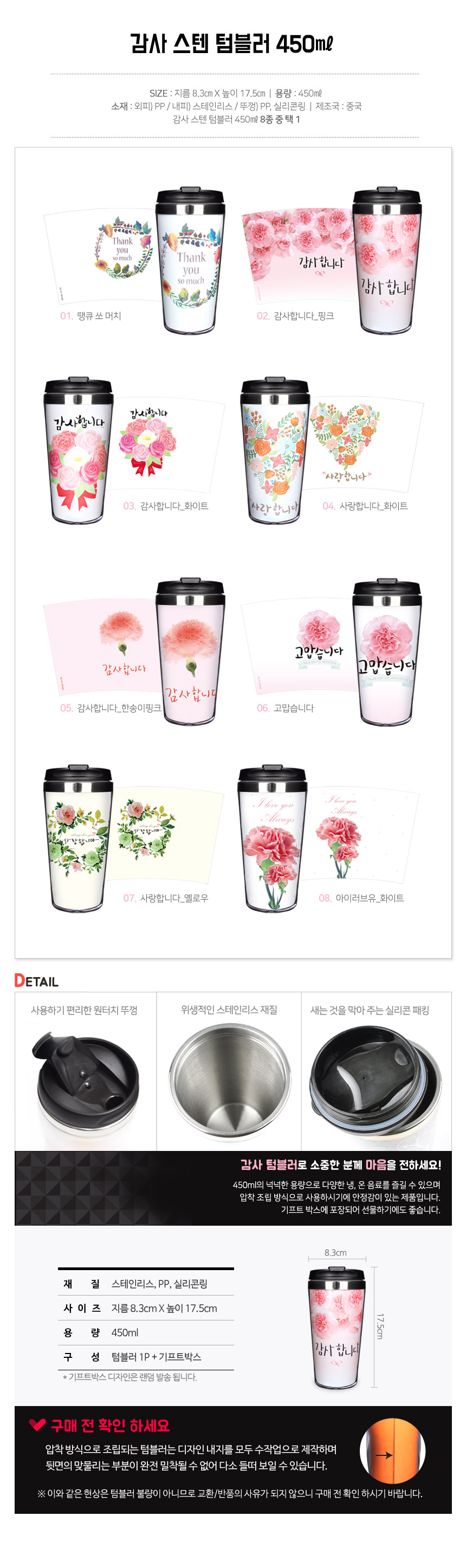 상품명 : 감사 스텐 텀블러 450ml