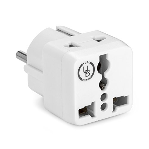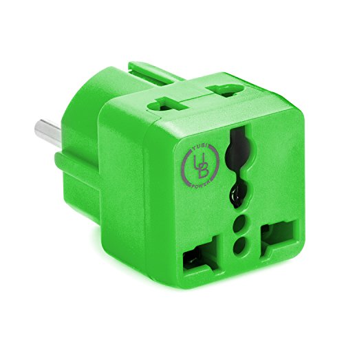 Yubi Power Grounded 2 in 1 Schuko Plug Adapter Type E/f for Europe, France, and More... / with Two Universal Plug in Ports /Grounded - Ce Certified - Rohs Compliant--3 Pack Blue,Green,White