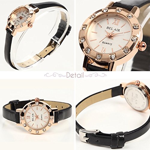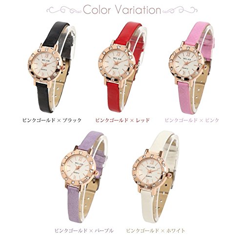 [벨 에어]Bel Air 손목시계 레이디스 워치 아날로그 표시 라인 스톤 첨부 와 가는 몸으로 품위가 있는 디자인 YH4 (핑크 골드×화이트)