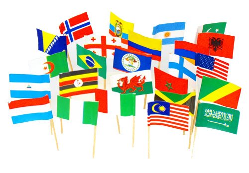 Huge assortment of flags from countries throughout the world on wood toothpicks.