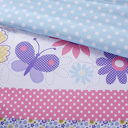 HAPPY DAISY COMFORTER SETBrighten up your bedroom with the Comfort Spaces Happy Daisy Comforter Set. Playful butterflies and beautiful flowers are highlighted with bright colors for a delightfully fun look! Cheerful sham(s) reiterate the design seen on top of bed and feature a lovely flange to add a charming touch. A decorative pillow completes the ensemble to transform your room into a fresh field of fun.