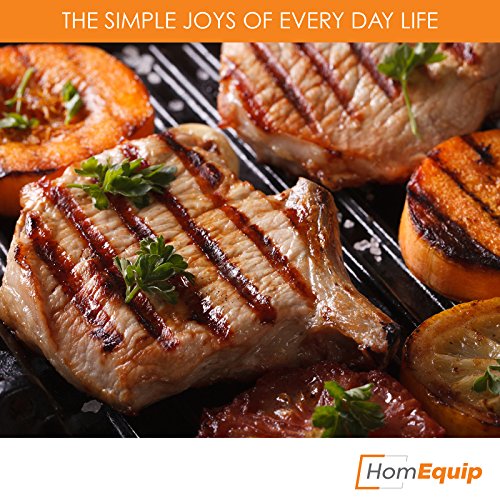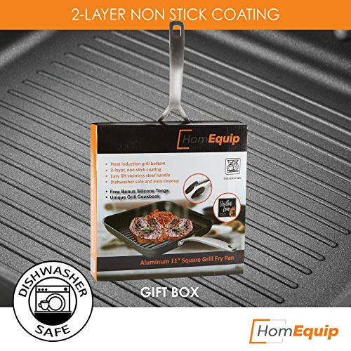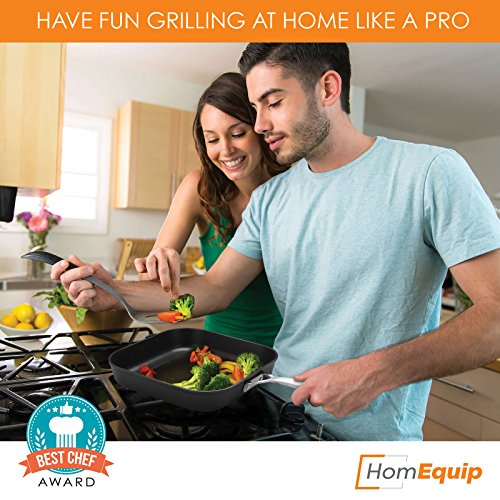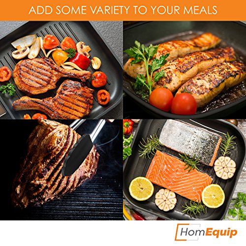 HomEquip makes grilling fun! This skillet comes with a bonus unique grill cookbook and silicon tongs, making preparing restaurant quality meals an enjoyable experience.