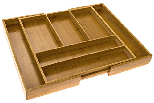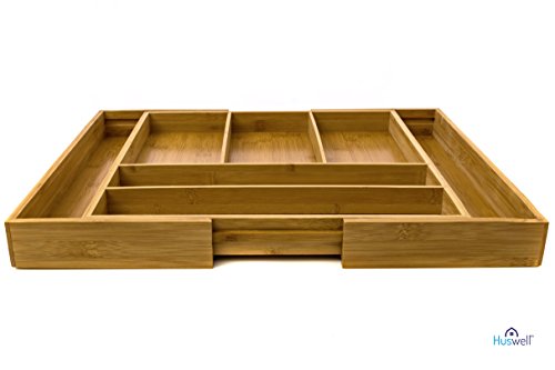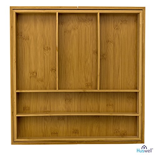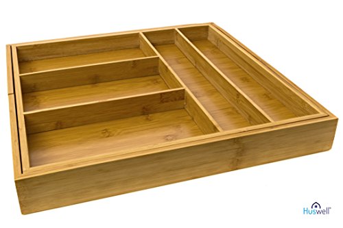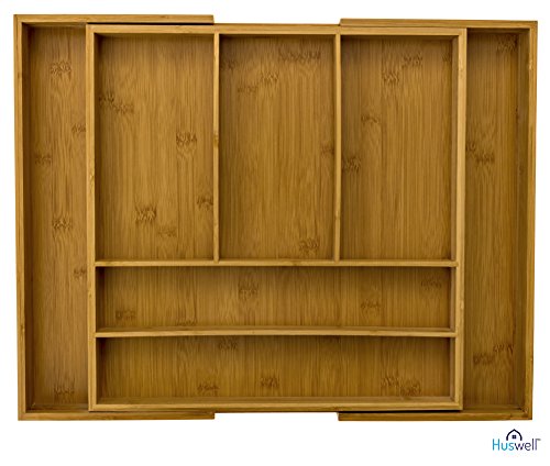 Huswell Bamboo Expandable Drawer Organizer Tray, 7 Slot, 15 3/8 to 20 in.