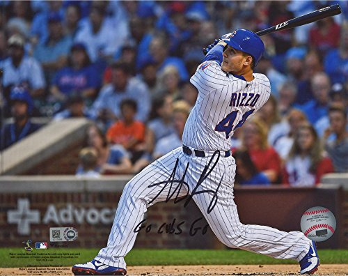 Anthony Rizzo Chicago Cubs Autographed 8" x 10" Horizontal Hitting Photograph with Go Cubs Go Inscription - Fanatics Authentic Certified