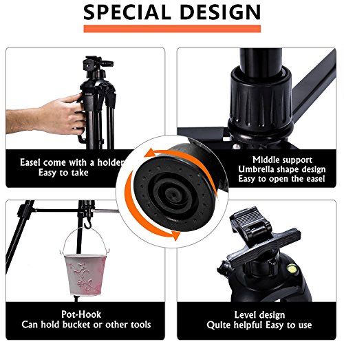 Art Tripod Easel Stand Display Easels Adjustable Lightweight Aluminum Floor Easels Upgraded Painting Field Easel with Portable Carry Bag (black)