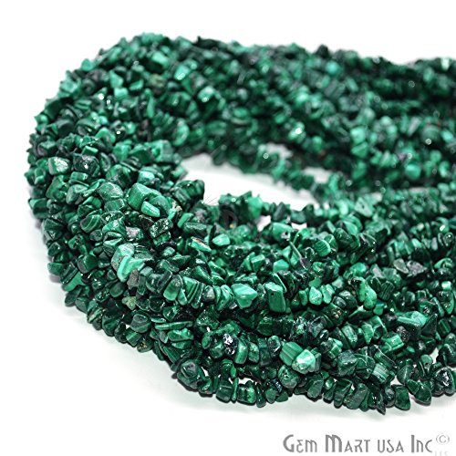 1 Strand (34inches) of Real Natural Malachite Gemstone Chips Beads. Green Color, Wholesale Price. Prepared Exclusively by GemMartUSA.