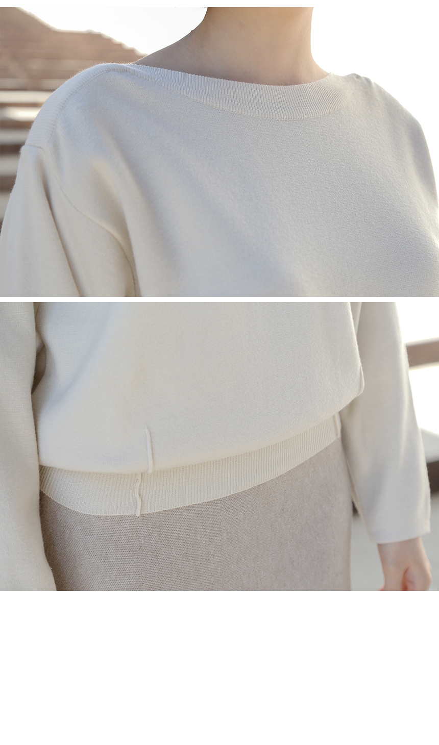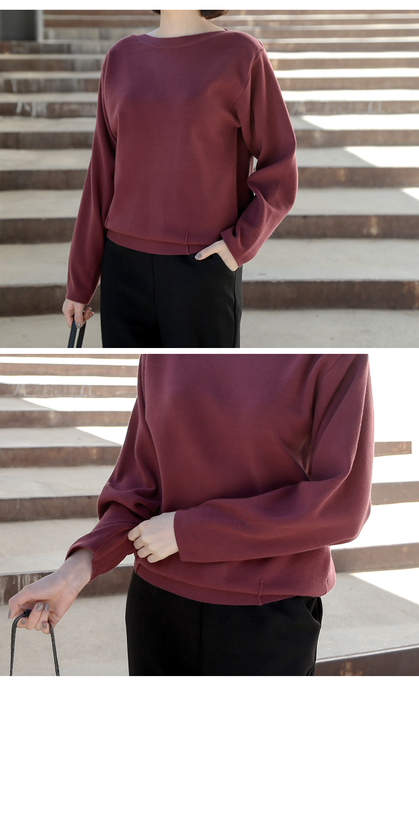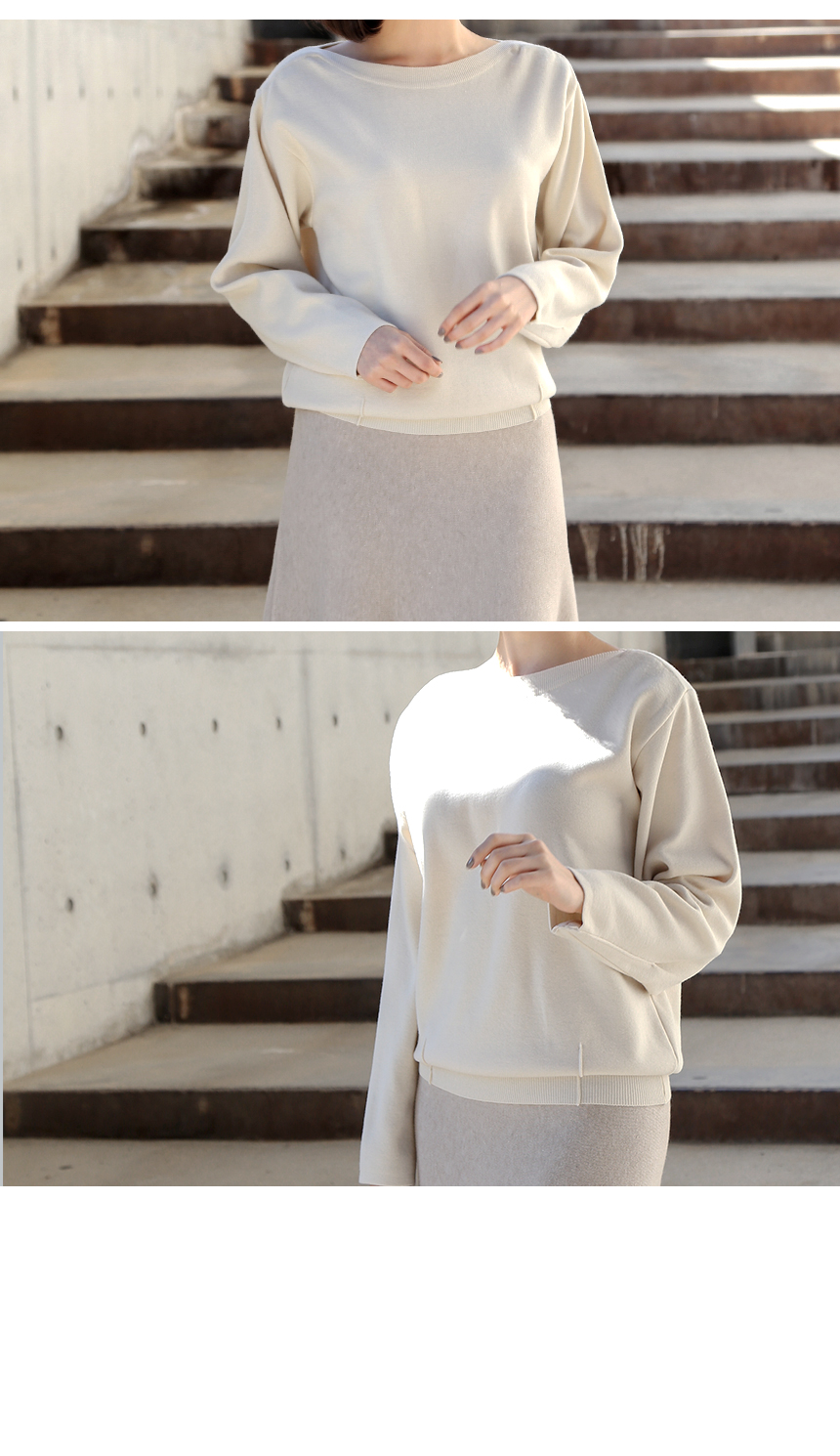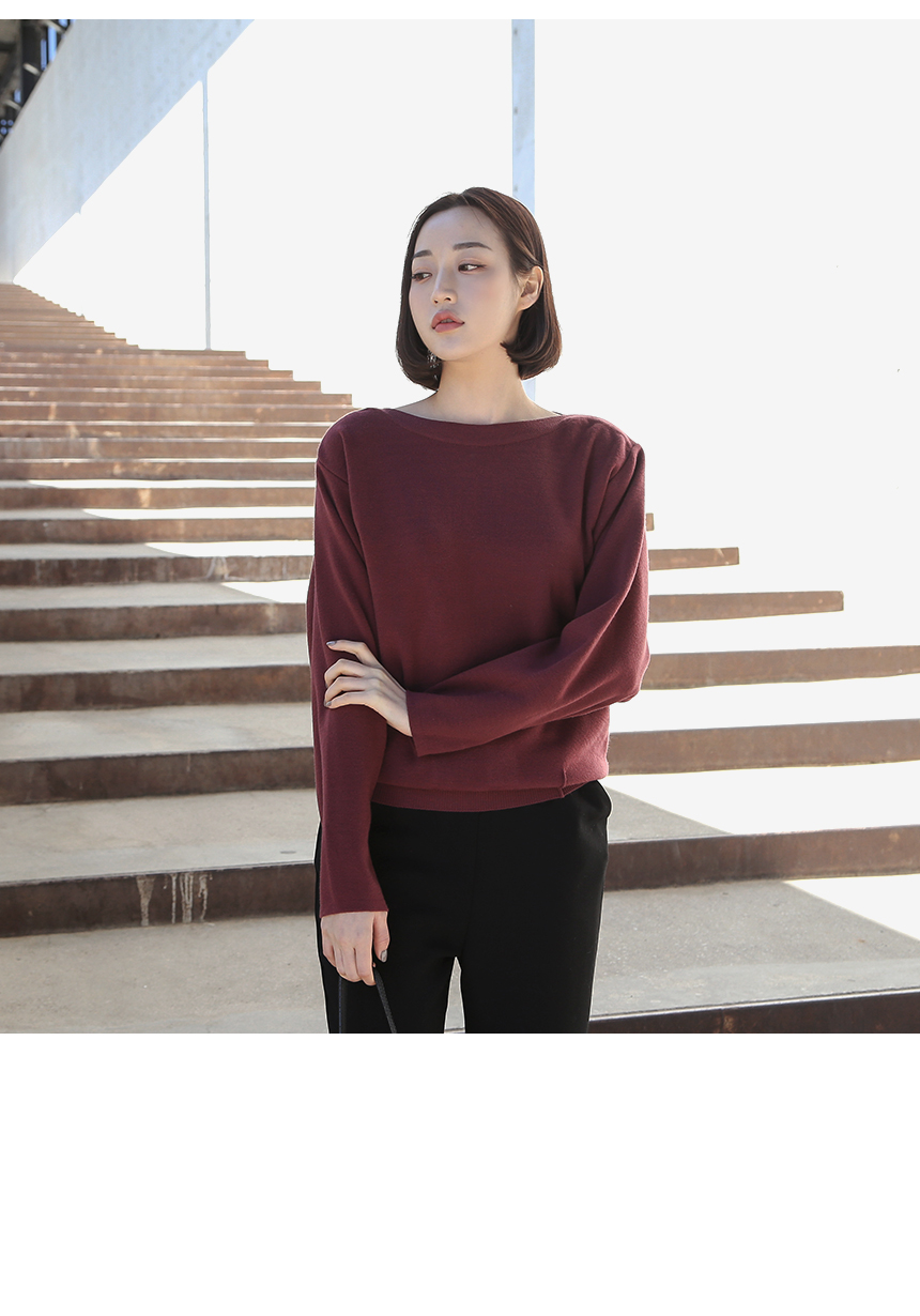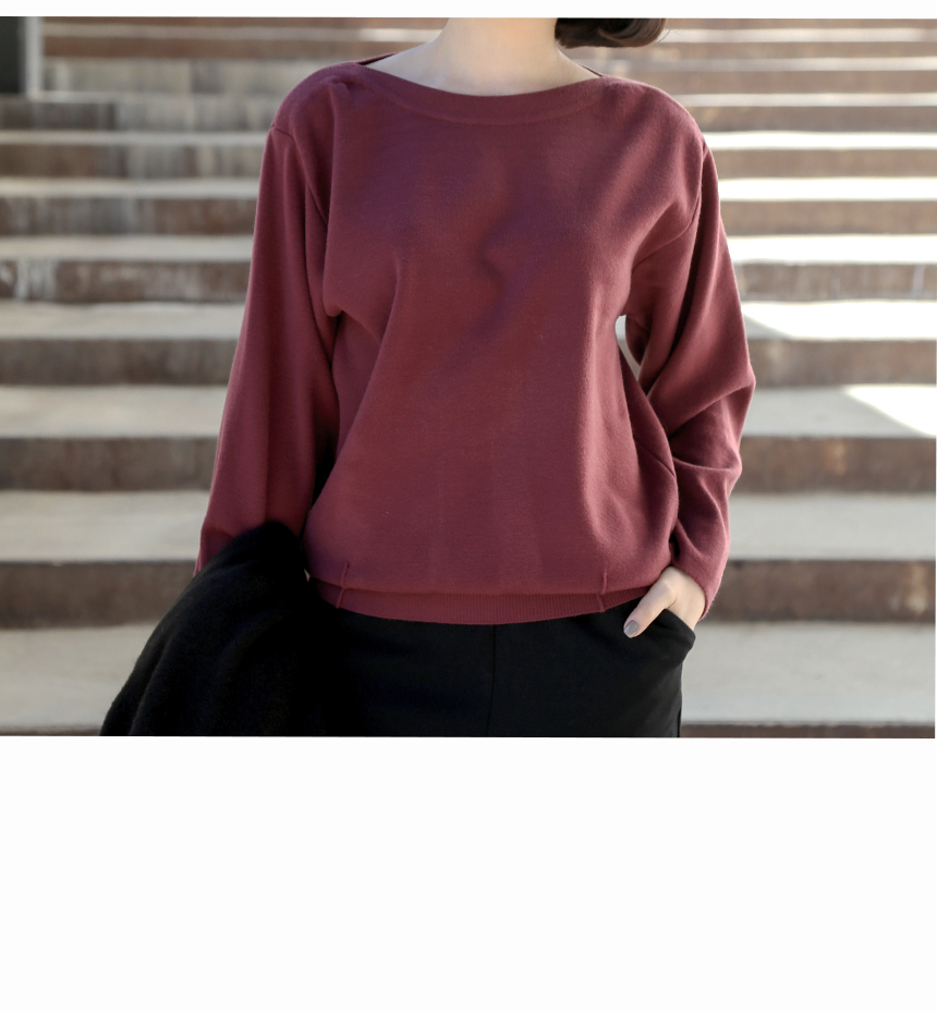 우아한 보트넥 맞주름 니트