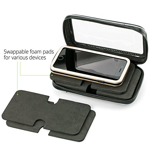 UNIVERSAL POUCH MOUNT: Compatile with all smartphone/ GPS / MP3 Player up to 6 inches with removable padding with or without your favorite case such as Apple iPhone X, 8, 8 Plus, 7, 7 Plus, SE, 6S, 6S Plus, 6 4.7, 6 Plus, 5s,5c, 5, LG G6, G5, Google Nexus 5X, G4, K7, K10, Sony Xperia X5, Z5, M5, Z3, Motorola Moto C Plus / G5 Plus / G Plus (5th Generation), Samsung Galaxy S8+, S8, Note 8, HTC U11, One X10., LG G6, G5, Aristo, V20. Google Nexus, Motorola Cell Phone