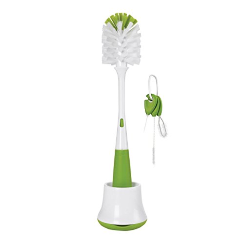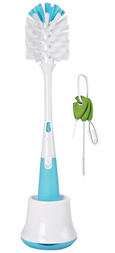 -. Binding : Baby Product -. Brand : OXO -. Feature : Brush head has two types of bristles for gentle cleaning and serious scrubbing / Flexible neck for easy reach inside bottles / Silicone nipple cleaner gets into tight spaces and is ideal for bottle nipples, sippy cup or breast pump parts / Cleaning brush set consists of 3 tools; straw brush, lid and pump parts brush and sippy spout cleaner / Dishwasher Safe -. IsAdultProduct : 0 -. Label : OXO -. Manufacturer : OXO -. ProductGroup : Baby Product -. ProductTypeName : BABY_PRODUCT -. Publisher : OXO -. Studio : OXO -. Title : OXO Tot Bottle Brush with Nipple Cleaner and Stand with Cleaning Brush Set