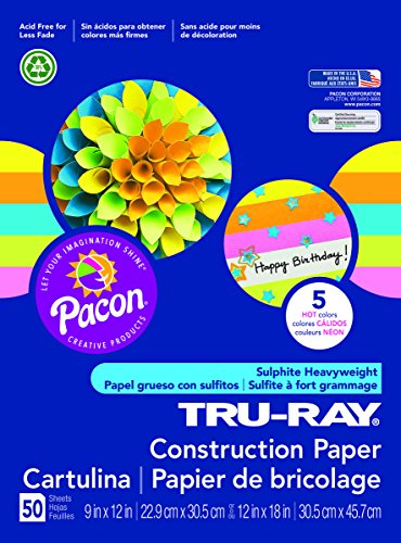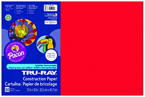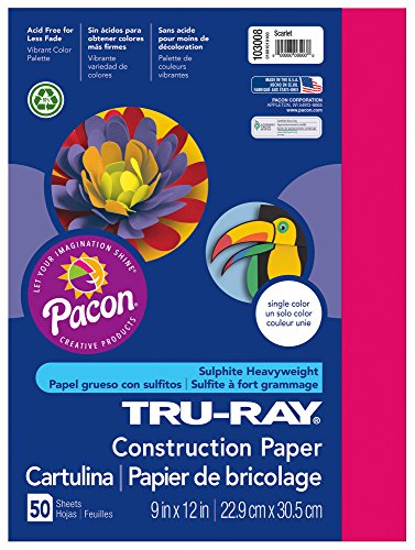 Pacon Tru-Ray Construction Paper is perfect for any arts and crafts project. This heavyweight, 100% vat-dyed sulphite paper is made with longer, stronger fibers for extra durability. This paper is tough enough to take scoring, folding and curling without cracking and tearing. The superior fade-resistance of the paper keeps your projects brighter longer. This pack comes with 50 sheets of 9-inch by 12-inch Holiday Red paper. This Pacon Tru-Ray Construction Paper is acid free and recyclable. Pacon Tru-Ray Construction Paper allows you to let your imagination shine!Feature