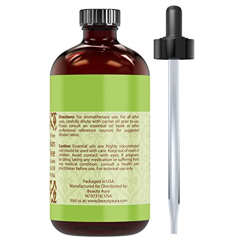 - FRESHNESS ASSURED Beauty Aura Tea tree essential oil comes in an amber colored glass bottle to block the light and keep the oil fresh.