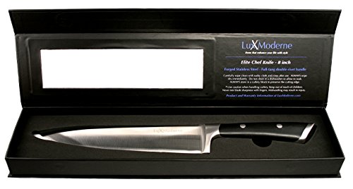 • Well-Balanced precision design is comfortable in your hand, and the perfect weight to make food prep a breeze. Own your very own Lux Moderne Elite Chef Knife and feel like a Professional Chef!