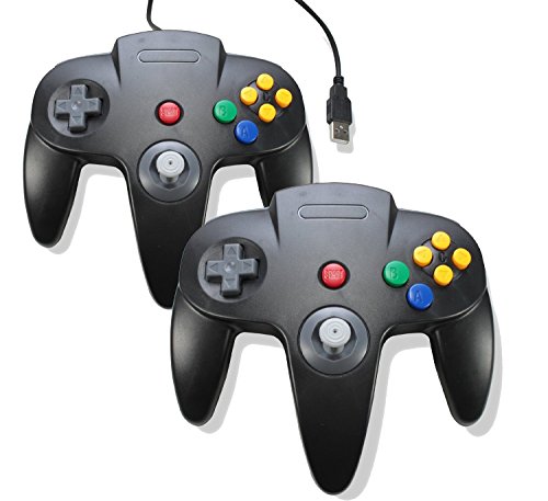 Bowink 2 pack Classic Retro N64 Bit USB Wired Controller for PC - Black+Black