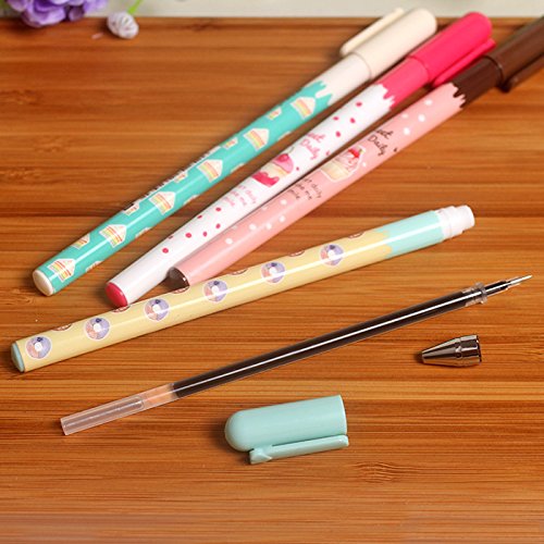 -. Title : Package of 4 Assorted Colors 0.38mm Extra Fine Black Gel Ink Pen with Sweet Desserts Designs