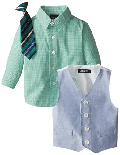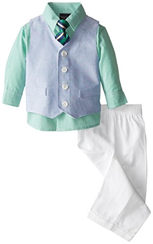 Four-piece set featuring dress shirt, vest, tie, and pant