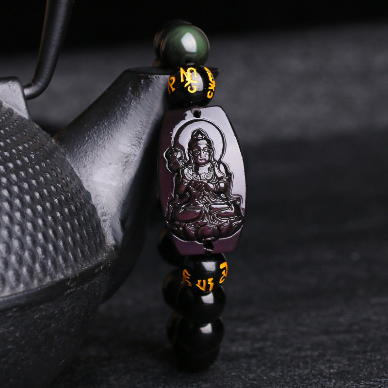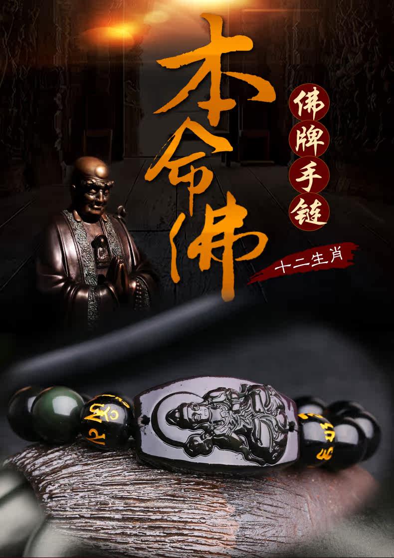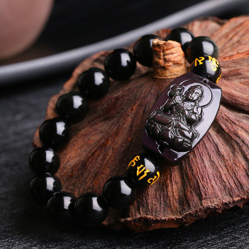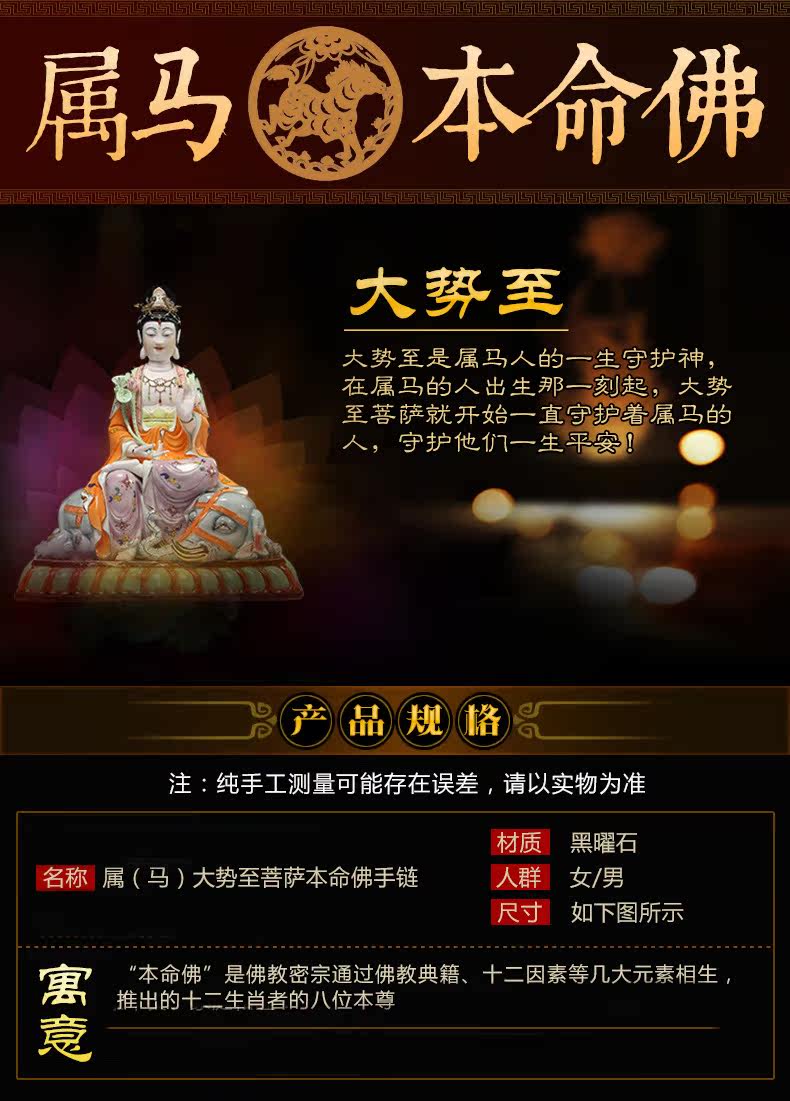 开光属马大势至菩萨生肖本命佛心经手链黑曜石生肖马佛牌手串男女