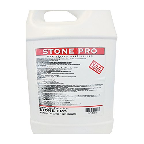 -. Binding : Kitchen -. Brand : Stone Pro -. EAN : 0814052010173 -. Feature : For all unpolished, flamed, honed, tumbled textured natural stone / Increases the natural color. Protects against staining / Deep penetrating sealer. Long lasting / No sheen. Non-gloss finish. Leaves no greasy residue / 200-800 sq. ft. per gallon. -. IsAutographed : 0 -. Label : Stone Pro -. Manufacturer : Stone Pro -. MPN : S-ESG -. NumberOfItems : 1 -. PackageQuantity : 1 -. PartNumber : S-ESG -. ProductGroup : Home -. ProductTypeName : HOME -. Publisher : Stone Pro -. Studio : Stone Pro -. Title : Stone Pro Color Enhancer - Unpolished Stone Sealer and Enhancer - 1 Gallon -. UPC : 814052010173