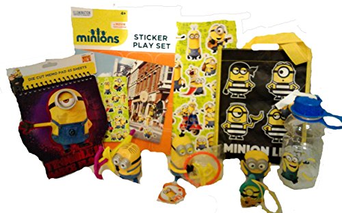 -. Feature : Awesome Minion Bundle Includes 8 High Quality Items / Includes minions sticker play set - (Be unique and sticker this fun panoramic background scene with repositional stickers of Stuart, Kevin, and Bob to make a fun interactive scene), minions memo pad -( die cut memo pad with 45 sheets) / Also includes minions mini tote -- (carry all your treasures in this little bag), minions water bottle - (quench your thirst with this water bottle with your minion favorites), & 4 Awesome minion character play figures. / Perfect Gift for Boy or Girl Ages 4-10 / On Sale Now!