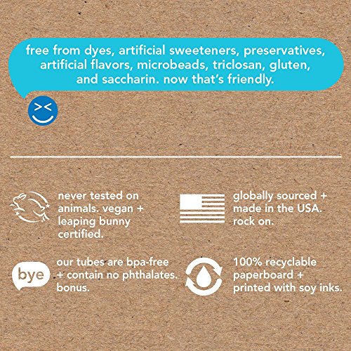 Free from dyes, sls/sulfates, artificial sweeteners/flavors, microbeads, triclosan and gluten.