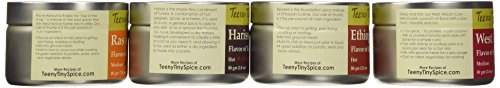 -. Feature : A wide range of spice blends representing African cuisine: Ras el Hanout, Harissa, Ethiopian Berberé, West African Curry / USDA Certified Organic, EarthKosher Certified Kosher, Non-GMO, Gluten Free / Medium to Hot / Four Full Sized 80 gm (2.8 oz) Tins of Teeny Tiny Spice Co. of Vermont Spice Blends / Freshly blended, ground and packaged by a small, family operated business