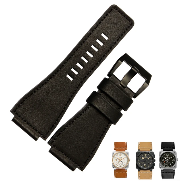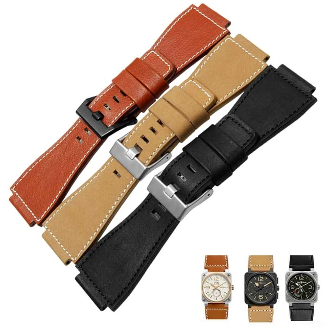 | [해외]TJP 34*24 미리메터 블랙 레드 브라운 카키 정품 송아지 가죽 방수 남자 시계 스트랩 손목 시계 벨 BR01 로스 BR03 함께 버클 |
