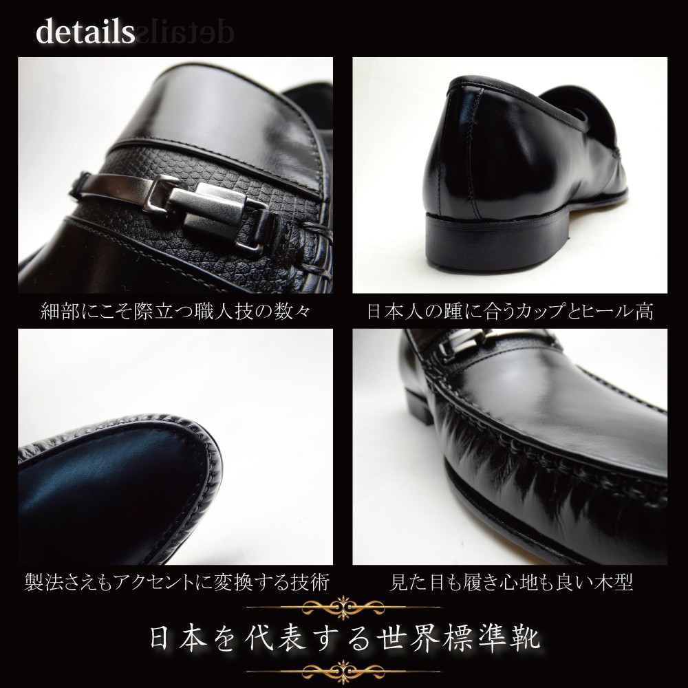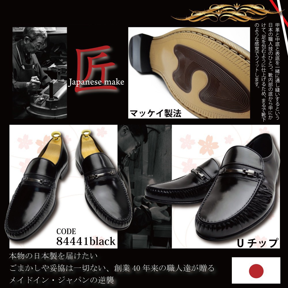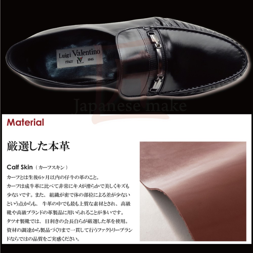 アッパー:本革 キップ(一部リザード) (製造過程において、革質を厳選した際にキップもしくはカーフへと変更になる場合がございます。) 本底:本革+ゴム底 |