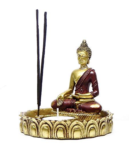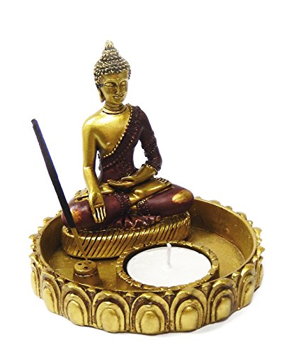 Incense Holder - Home Decor Accessories - Golden Buddha Incense Burner and Votive T-light Candle Holder Meditation Figurine