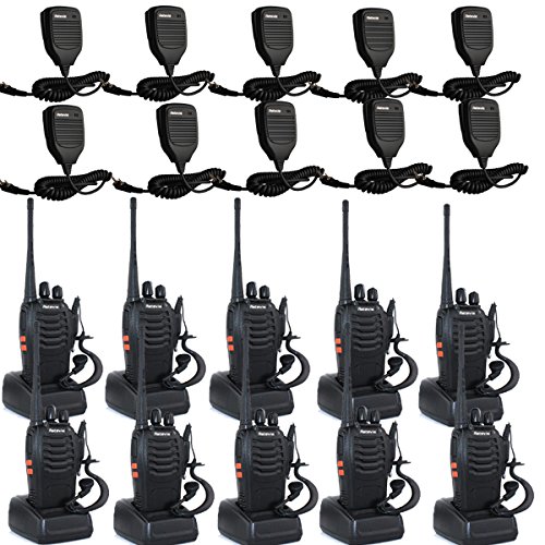 -. Binding : Electronics -. Brand : Retevis -. Color : Black -. EAN : 0631976557511 -. Feature : Simple design,easy to use: 16 memory channel, 2 knobs to control number of channels, power source and switch / 1500 mah Lit-ion battery lasts longer, with no memory / Built-in Led torch make things easier when in dark environment / They are programmed at the same frequency before they leave the factory; Once the radios at the same channel, they could be communicate / We provide 1 year warranty and 30 days no reason to return; No matter any reason, within 30 days you can apply for a return (Including the radio accessories) -. Label : Retevis -. Manufacturer : Retevis -. Model : Retevis H-777 -. PackageQuantity : 1 -. ProductGroup : Car Audio or Theater -. ProductTypeName : TWO_WAY_RADIO -. Publisher : Retevis -. Studio : Retevis -. Title : Retevis H-777 Walkie Talkie 16CH UHF 400-470MHz 3W with Earpiece 2 Way Radio Handheld Ham Amateur Radio(10 Pack) and Speaker Mic (10 Pack) -. UPC : 631976557511
