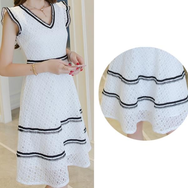 エレガントスタイル☆セクシー Vネック ノースリーブ レース フレアワンピース