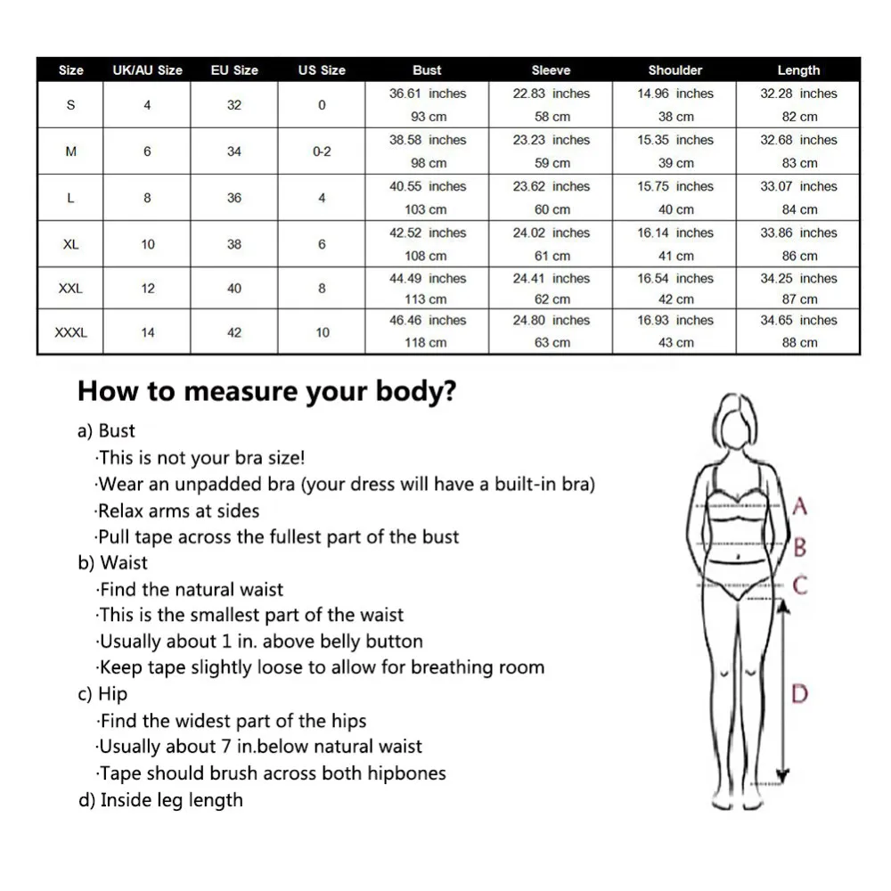 2. Compare the detail sizes with yours,please allow 1-3cm differs due to manual measurement, thanks (All measurement in cm and please note 1cm=0.39inch)