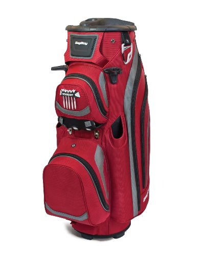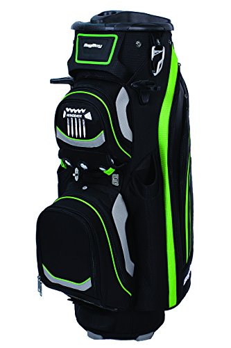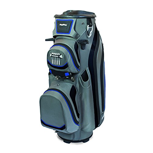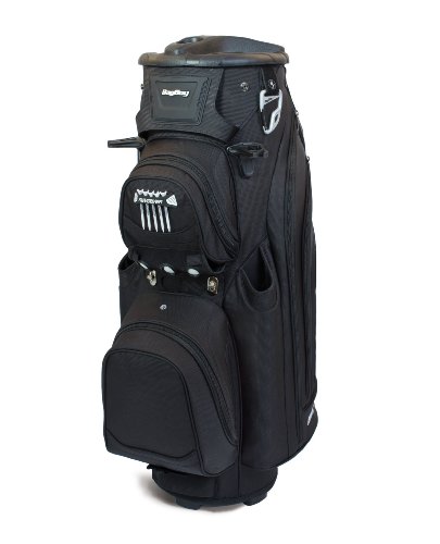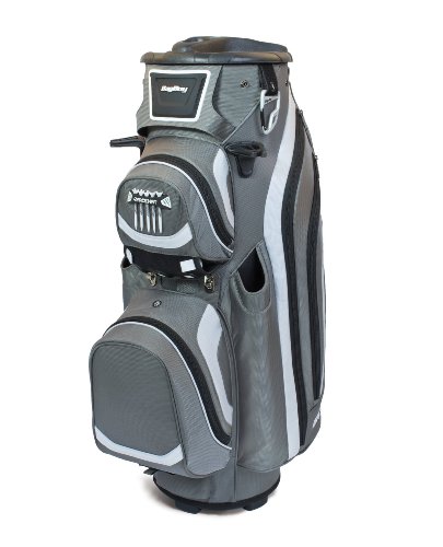 The Bag Boy revolver LTD cart bag features a 14-way rotating top with clip-lok technology to lock and hold clubs into place, protecting the shafts. This cart bag also has a removable insulated cooler pocket, two external PUTTER tubes with secure PUTTER clip and 8 total pockets providing ample storage.Feature