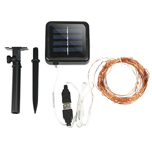 Solar USB Copper String Light,8 Function ,100LED,3V1.4W Dimmable Copper Wire Starry Light by MAXINDA (Warm White)