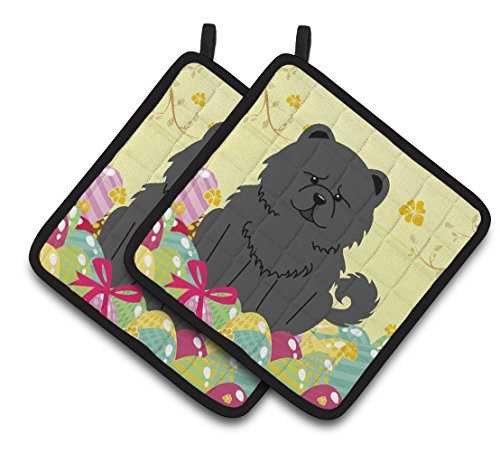Caroline's Treasures Easter Eggs Chow black Pair of Pot Holders, 7.5HX7.5W, Multicolor