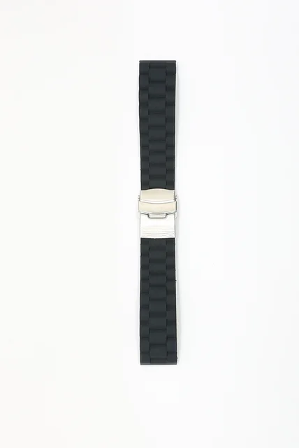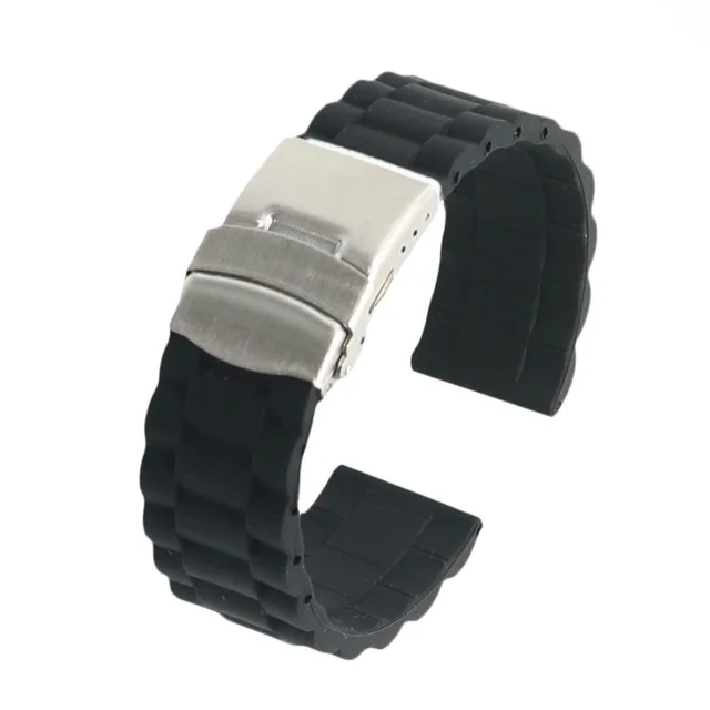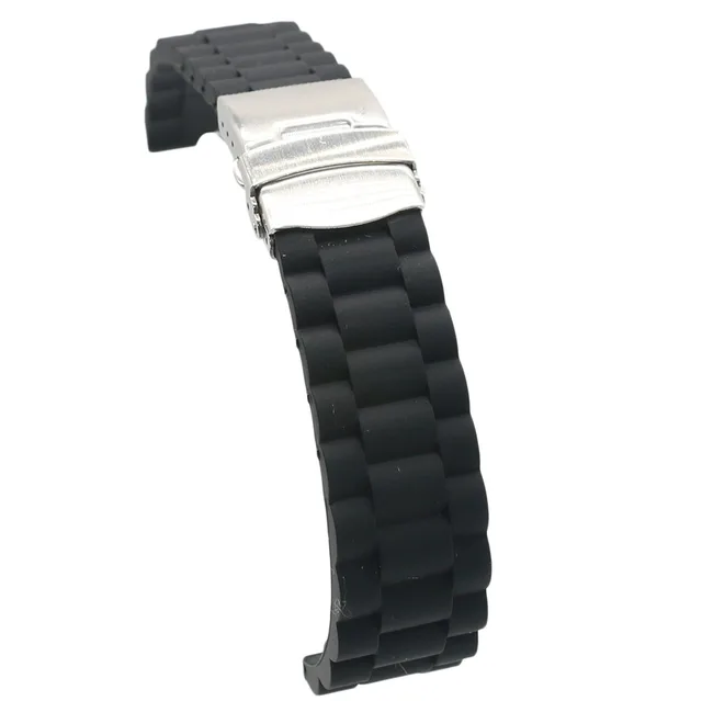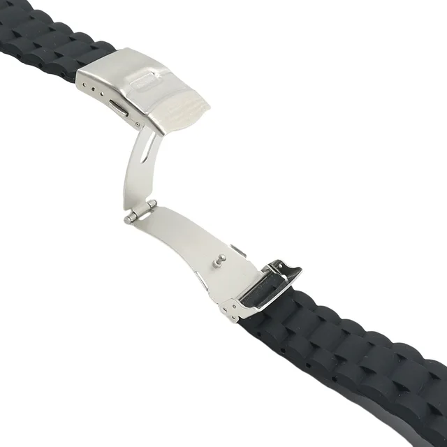 | [해외]18 20 22 24 미리메터 새로운 블랙 스트랩 실리콘 고무 방수 시계 밴드 벨트 스트레이트 엔드 더블 푸시 스테인레스 스틸 버클 버클 |