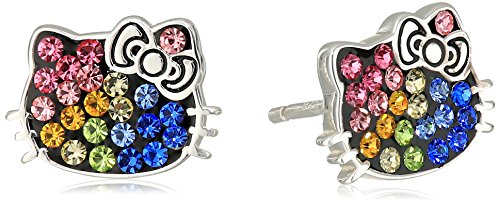 Sterling silver Hello Kitty earrings with rainbow crystal face