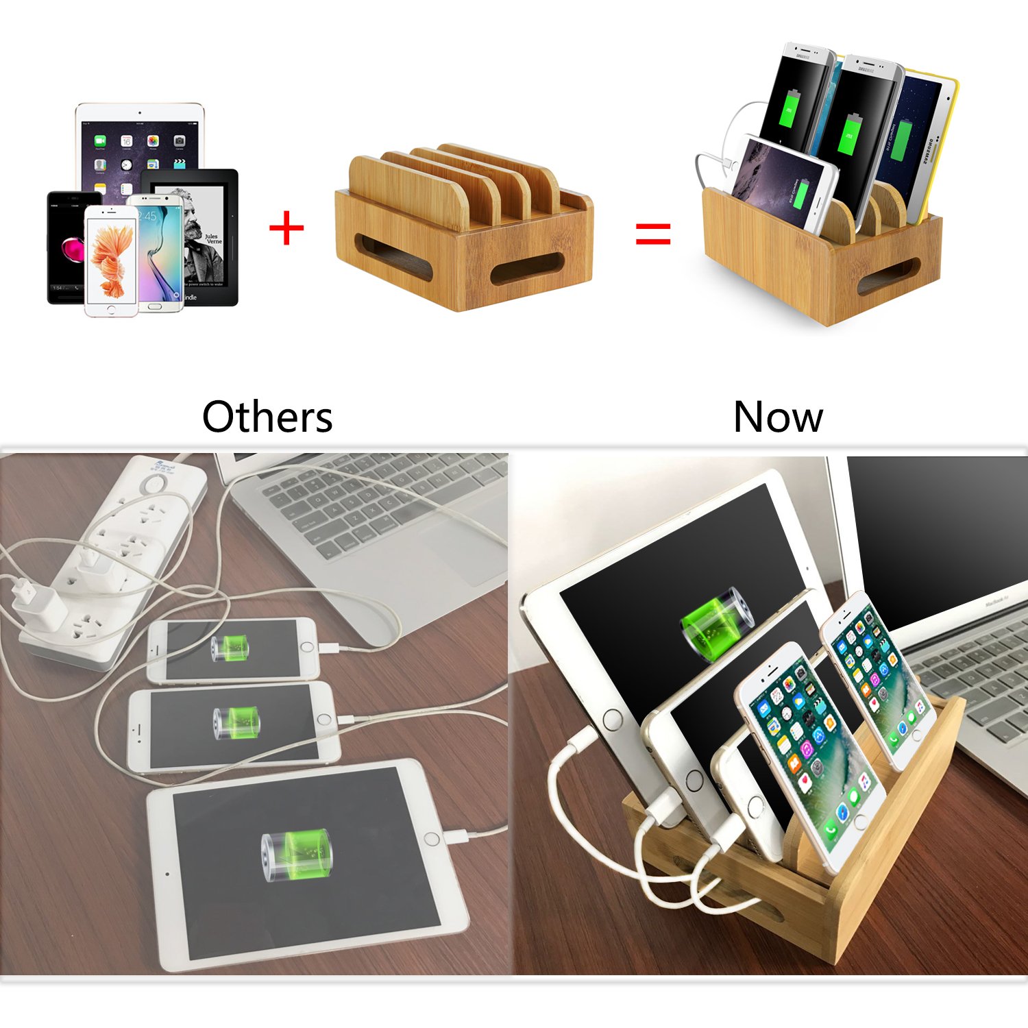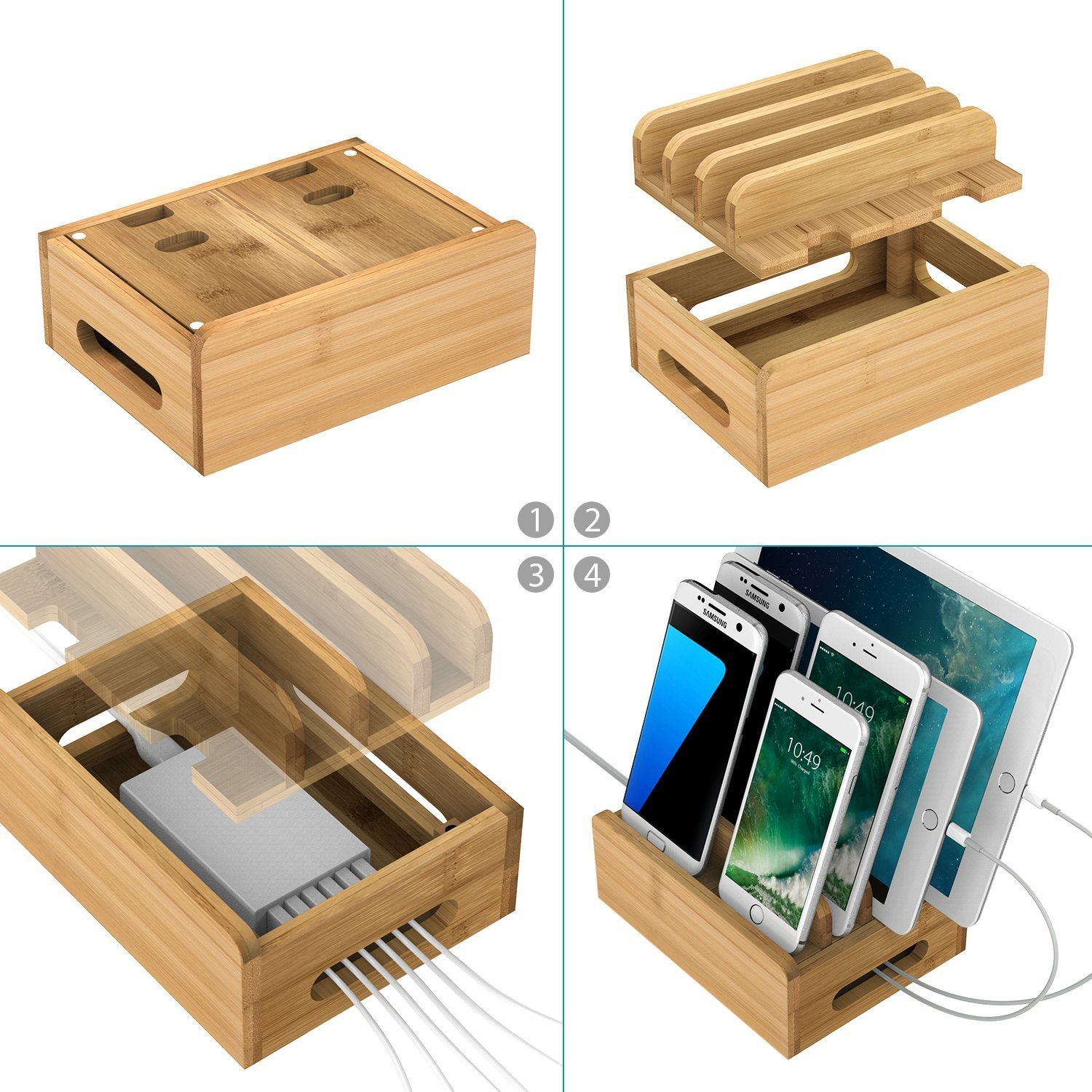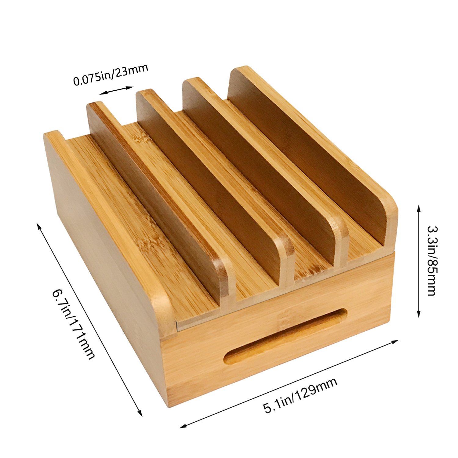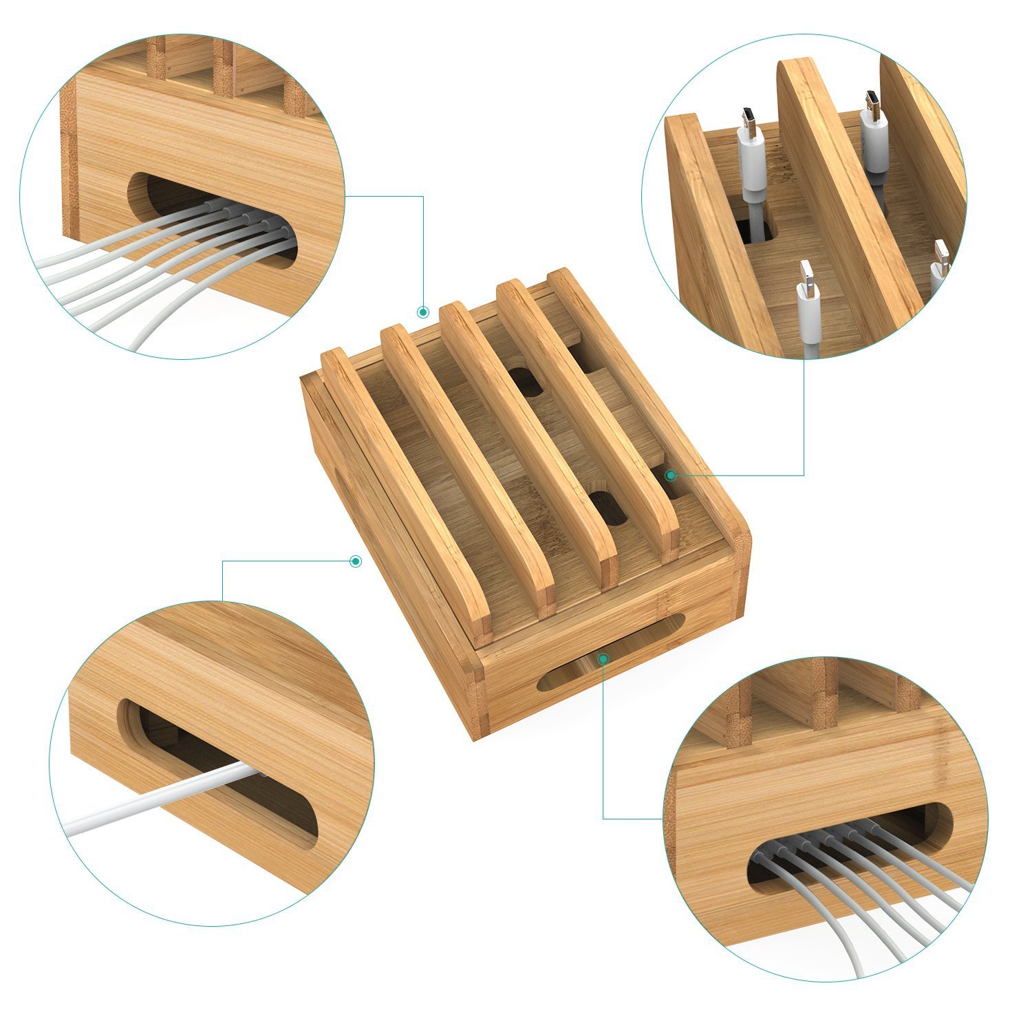 Bamboo multifunction charging station (USB charger and charging cable are not included)