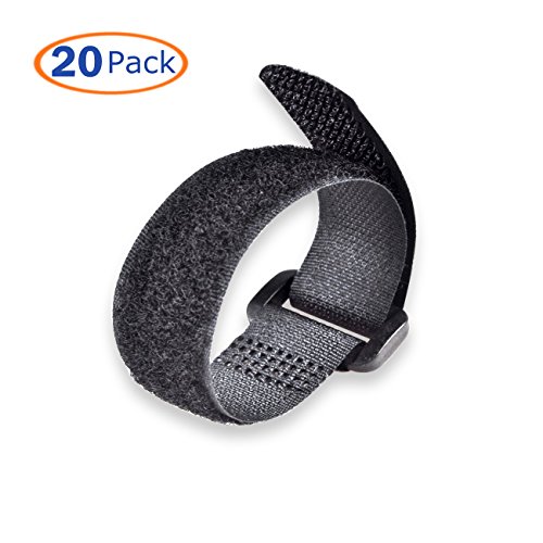 Fastening Tape Cable Ties by Conwork Reusable Hook & Loop Cinch Straps Cord Management 20-Pack (9" Long / 3/4" Wide, Black)