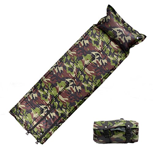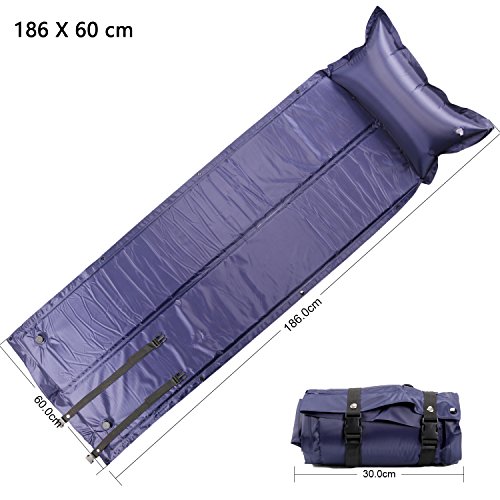 FSDUALWIN 자동 팽창식 에어 매트 캠핑 매트 캠프 매트 아웃도어 매트 에어 매트 에어 베개 부착 연결 가능 방수 콤팩트 경량 수납 휴대에 편리 고반발2.5cm 차
