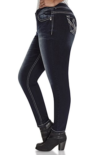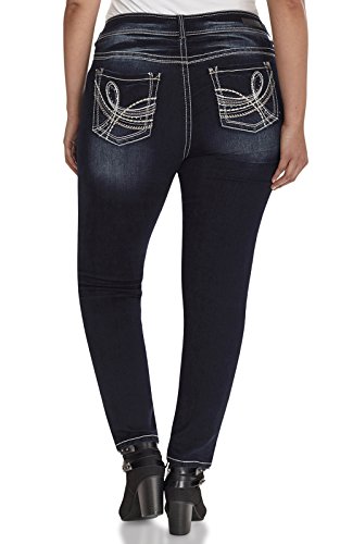 Our Plus Size Luscious Curvy Skinny Jeans feature classic five pocket styling and a double button closure. Contoured waistband to prevent gapping while creating a slim silhouette.