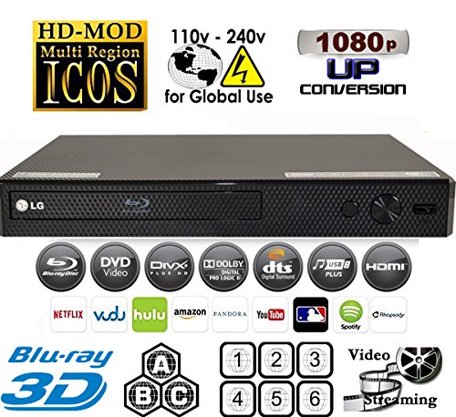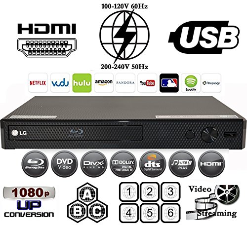 LG BP255 Multi System All Zone Region Free Blu Ray DVD Player + 6FT HDMI cable & M-System Plug adapter bundle Package