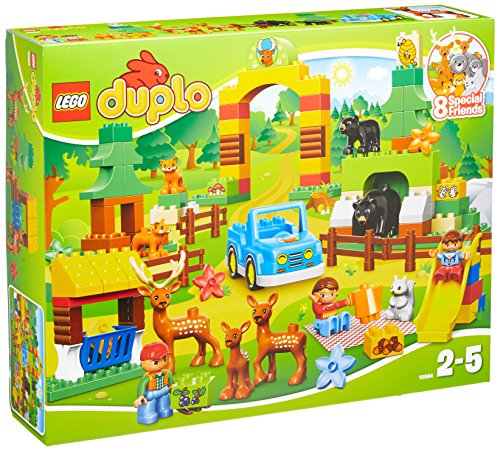 Duplo Let's play all day in the park of ® the forest! Is a park of forest running around squirrels. I'll make your out in the deer family. You can go to see a cave inhabited by bears in the car, let's peek whether fox live. Picnic When stomach is hungry. Once animals and what to eat Do not? Eat finished, Let's play with slide. Let's enjoy the pretend play by using a animal or doll. You can remember the name of the animal, that the forest and nature, let's play while talking like that of animals that live there. In Duplo blocks also easy to handle safety design to small children, car, shed, gate, forest cave, tree, also I enjoy assembling of slides. Mom, dad, and the doll of three bodies of children, family of deer, parent-child bear, fox two bodies, squirrel Contains.Feature