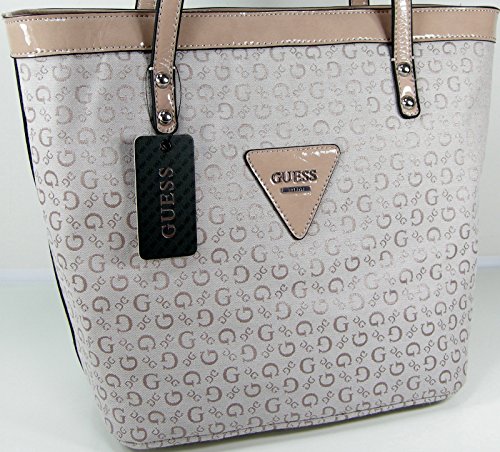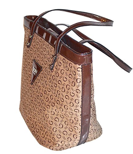 Authentic Guess Signature with Faux-leather Trim 8.5" Drop Double Straps Signature Lining with One Zip Pocket & 3 Slip Pockets Snap Top Closure Measures : 14" (L) x 10.5" (H) x 6.5" (D) Brand : GUESS EAN : 0885935702454 Product Dimensions(LxWxH) :