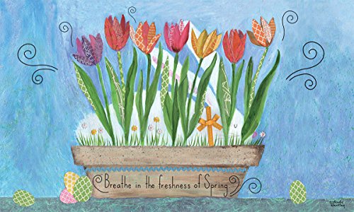 -. Feature : Slip resistant recycled rubber underside / 100% polyester with rubber backing / Indoor/Outdoor / Size: 18" h x 30" w