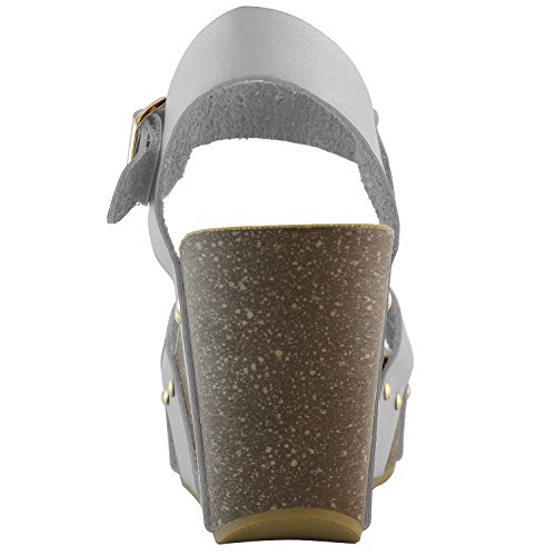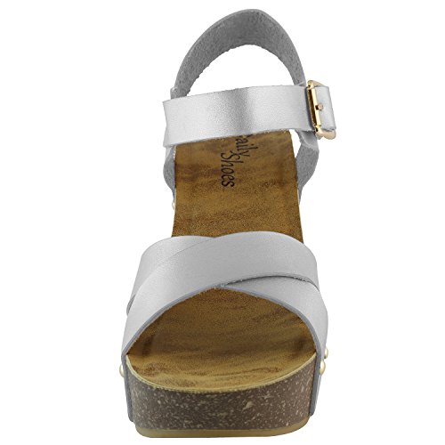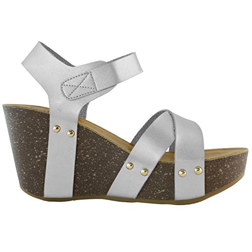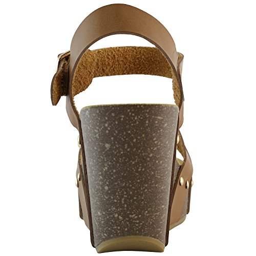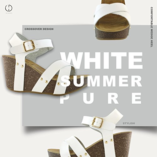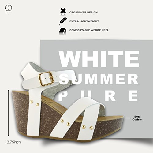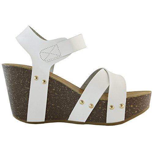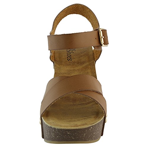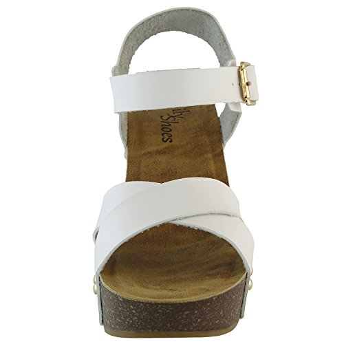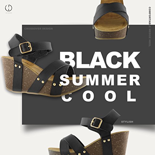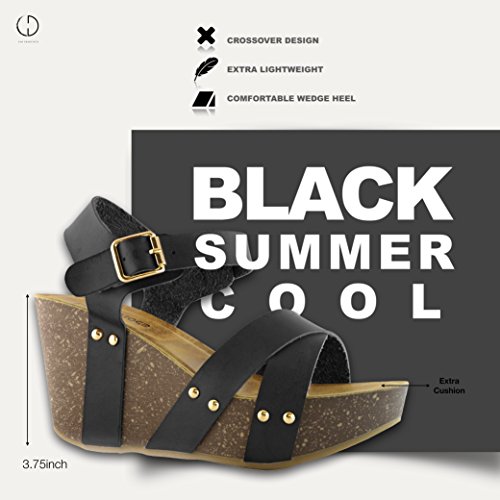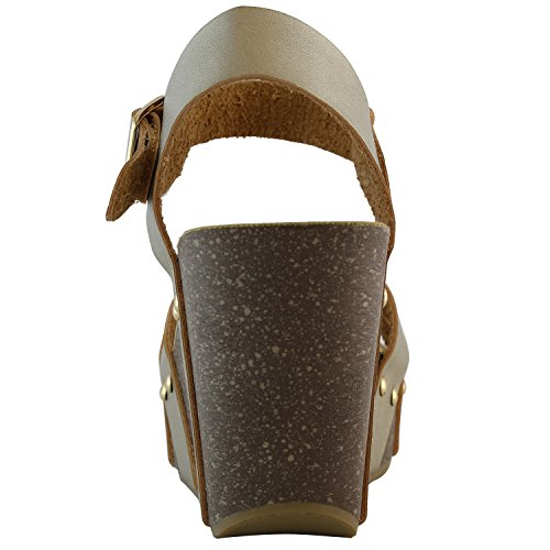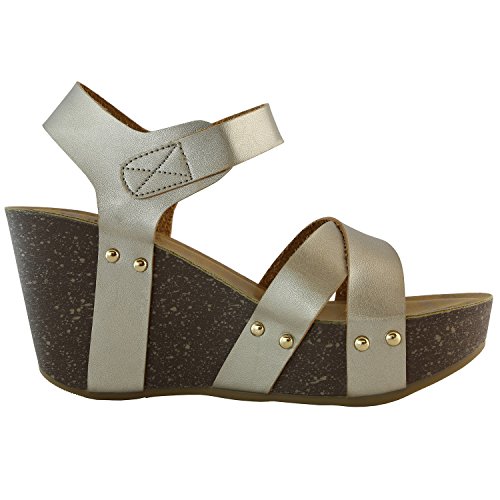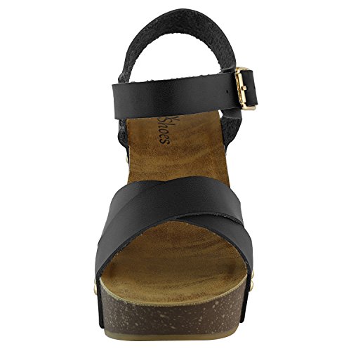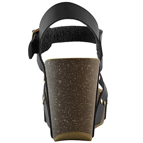 The DailyShoes Thick Cork Board Wedge Heels with Criss Cross Toe Strap are built from high quality materials that are intended to outlast years of use. They come with straps around the toe line that are thick and noticeable, crossing over one another in an x-shaped design. ON the side of the shoe, there are pairs of golden-toned studded embellishments that afford the shoe a bold and daring look. These studs match the color of the buckle for a streamlined and stylish look.