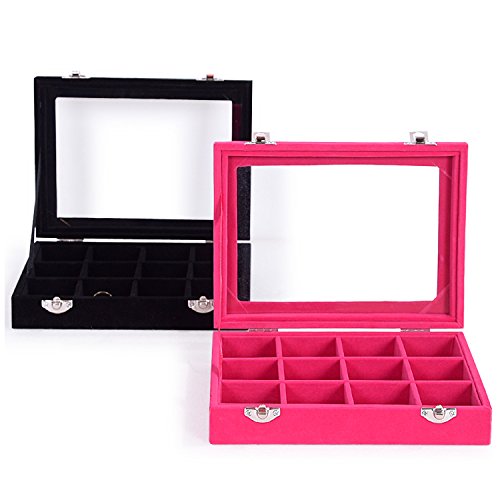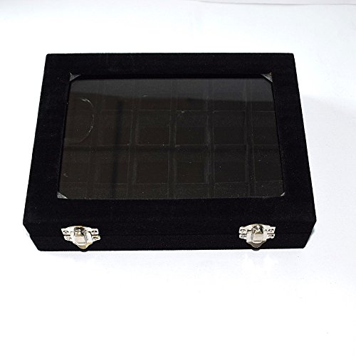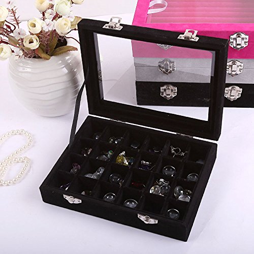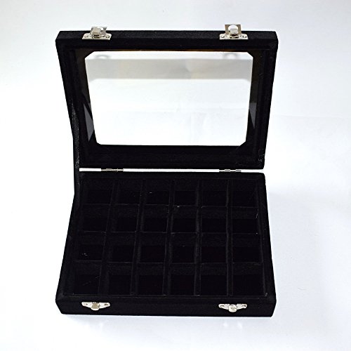 Life VC Black 24 Grid Velvet Glass Jewelry Ring Display Organiser Box Tray Holder Earrings Storage Case