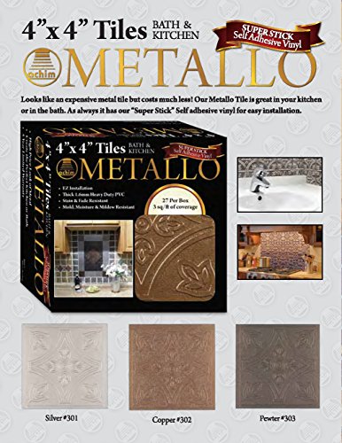 Achim Home Furnishings WTV301MT10 Metallo Vinyl Self-Sticking Wall Tiles, 4 by 4-inch, Silver, 27-Pack