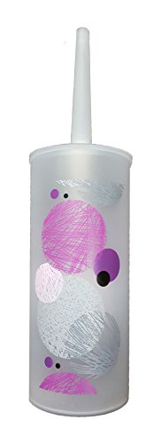 - Enjoy an art decor in your bathroom with these nice multicolored "woven" circles design printed on this toilet brush canister