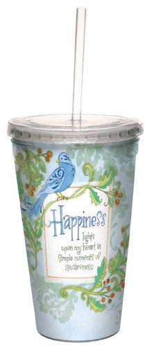 Tree-Free Greetings cc33455 Uplifting Happiness Bluebird by Robin Pickens Artful Traveler Double-Walled Cool Cup with Reusable Straw, 16-Ounce