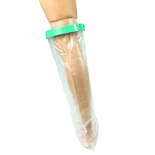 - Feature : MOISTURE PROTECTION: Locks out water, allowing you to shower comfortably during recovery without damaging casts or bandages. / PREMIUM VINYL: Waterproof vinyl seal keeps casts and bandages dry. / DURABLE & REUSABLE: Heavy-duty hypoallergenic vinyl can be reused and will not tear. Can be used at home or at an in-care facility. / HYPOALLERGENIC: Will not irritate skin or bandages. Non-restrictive and easy to put on. / UNIVERSAL FIT: Fits all leg cast sizes. Can be worn on either the right or left leg.